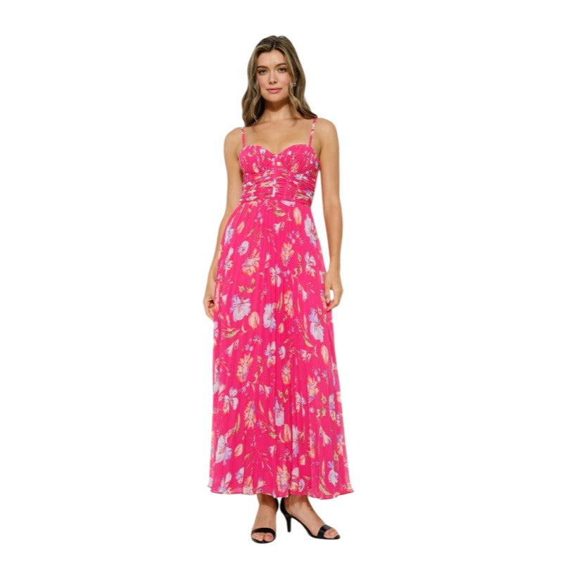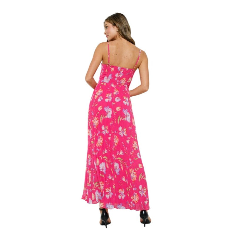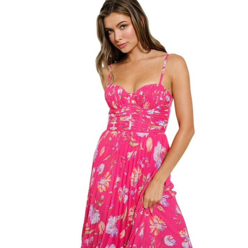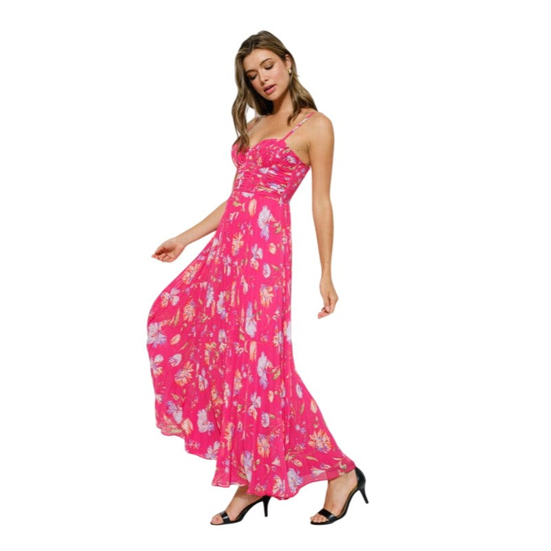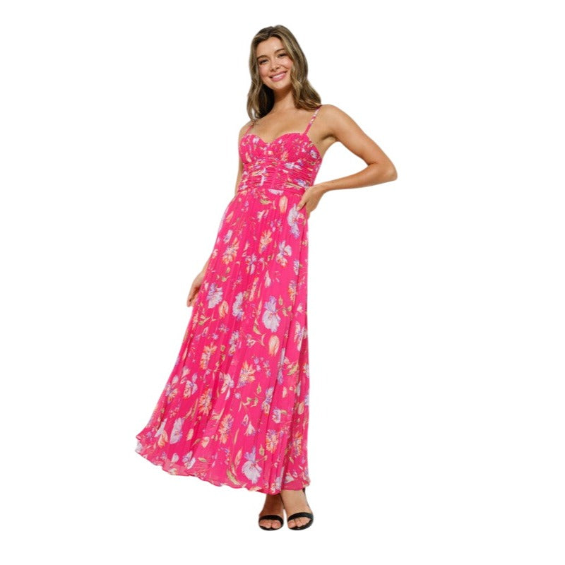 INA Pink Floral Ruched Bustier Pleated Maxi Dress IDM11662-G