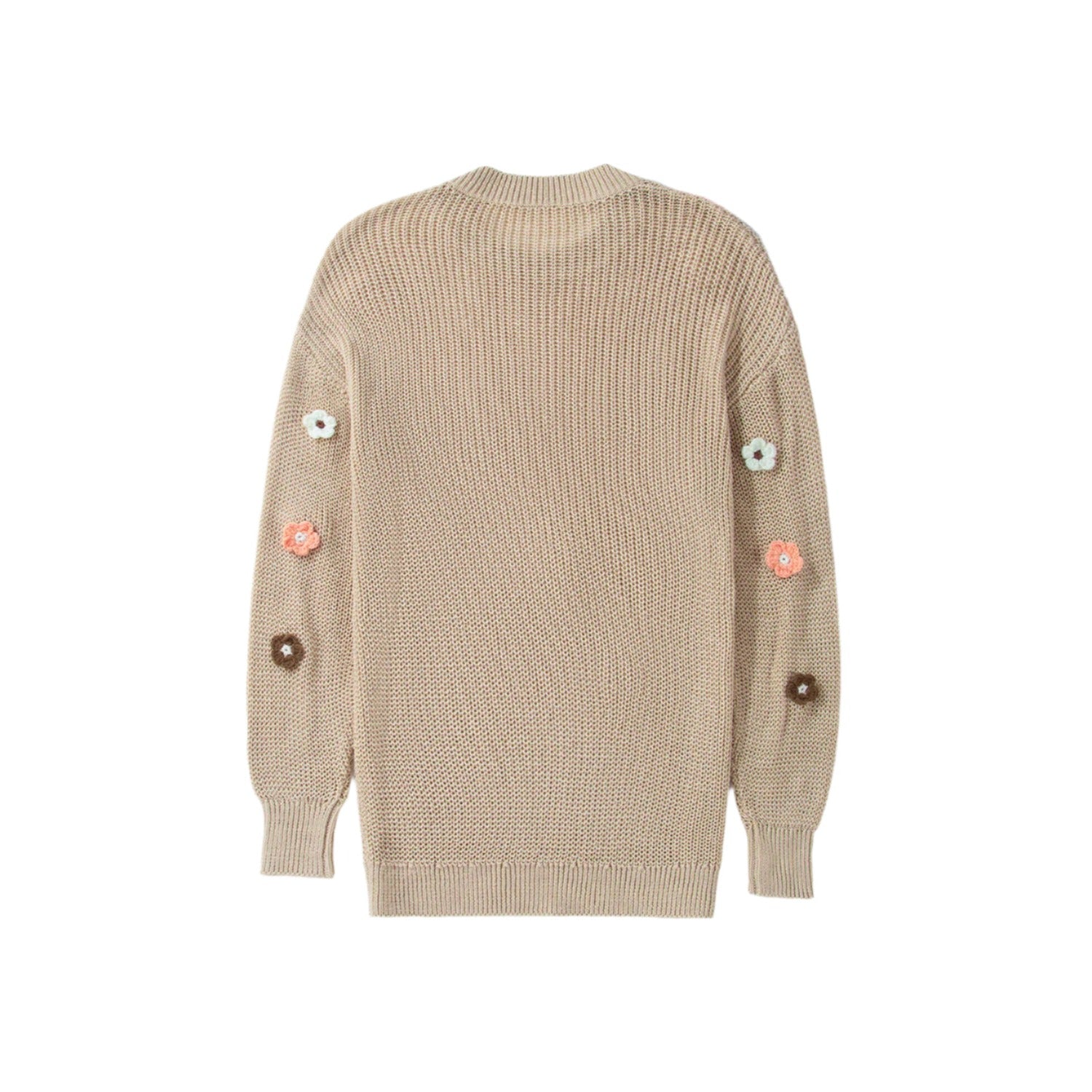 Hello Floral Embroidered Knit Loose Tan Sweater LC2724918