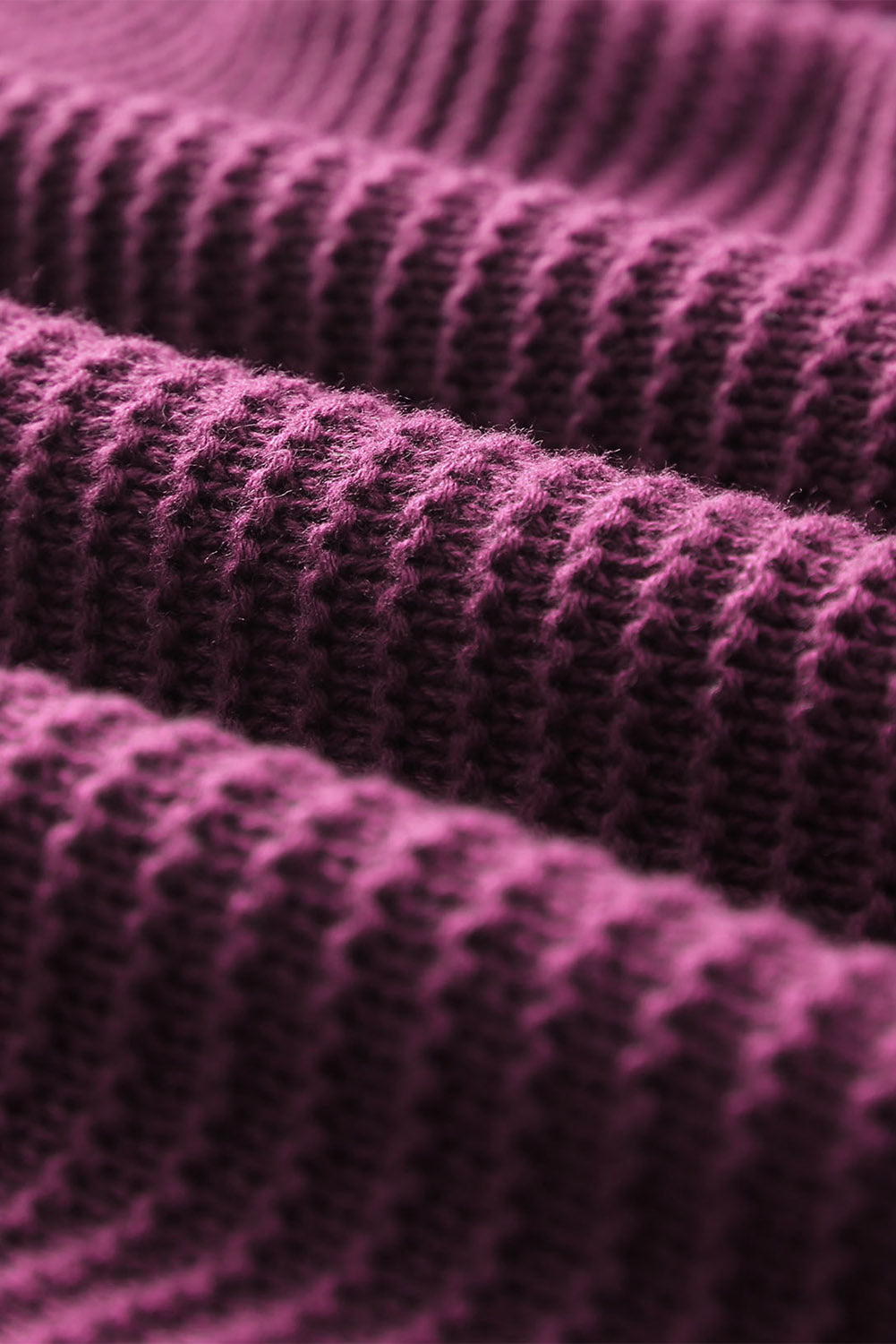 Purple Distressed V-Neck Ribbed Drop Shoulder Hooded Sweater LC2722612-3