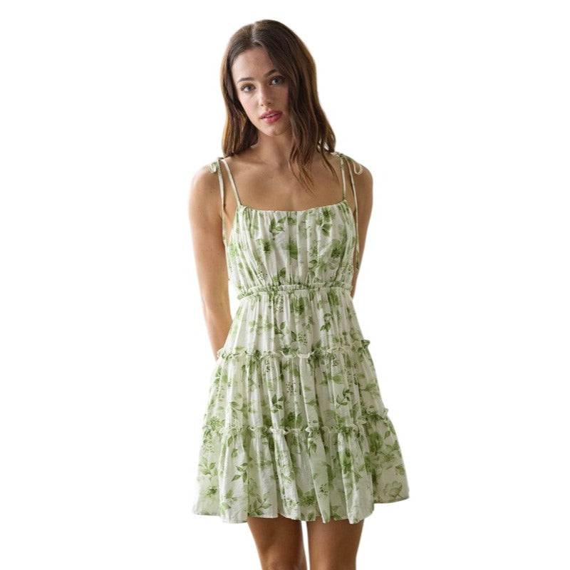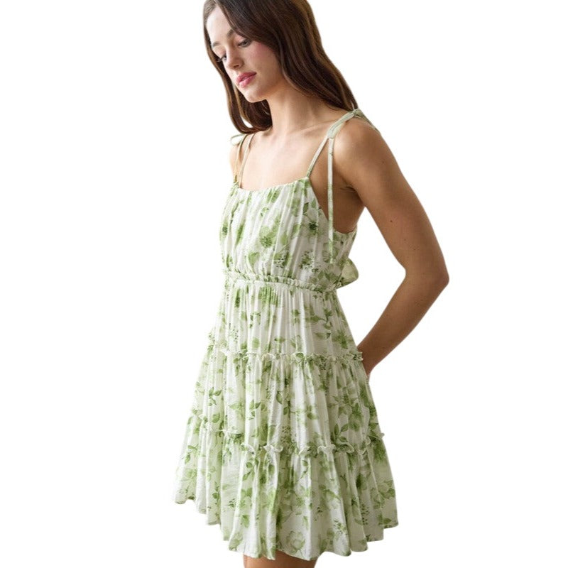 Blu Pepper Floral Spaghetti Strap Back Tie Tiered Mini Dress CR2459