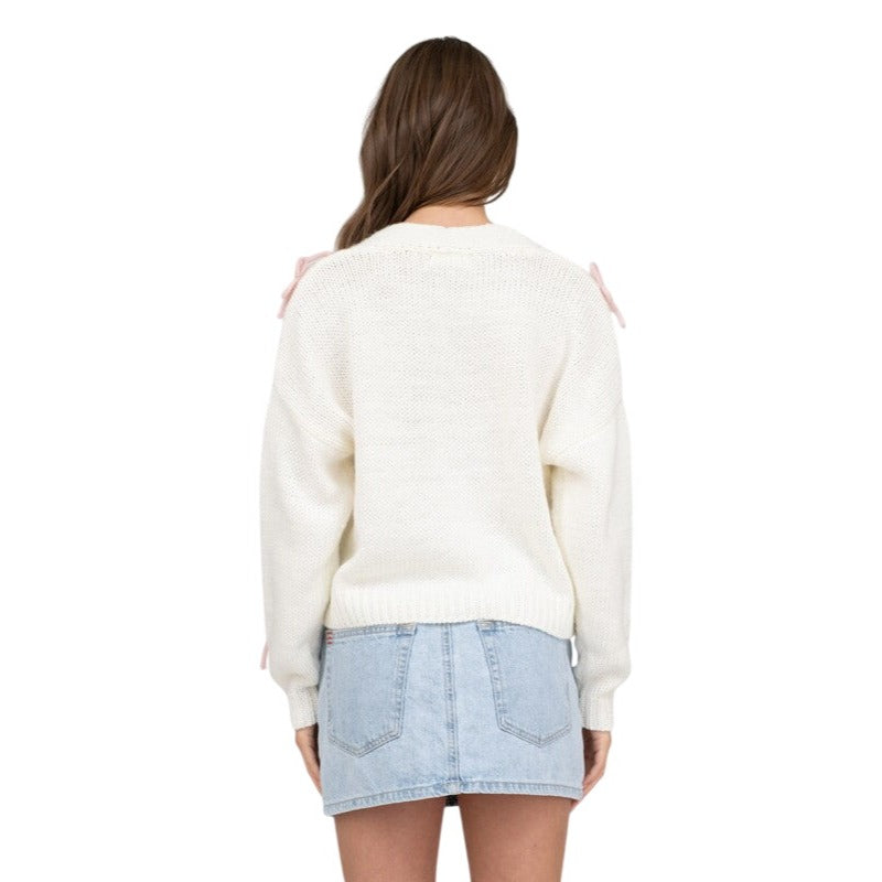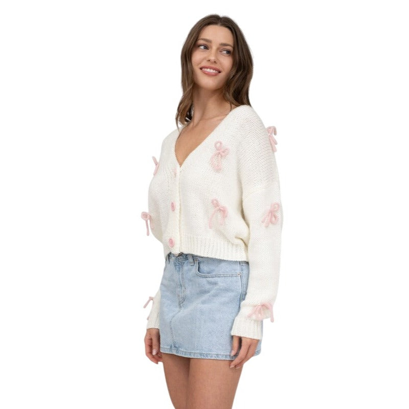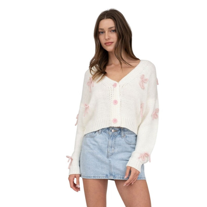 Blu Pepper Bow Detail Button Down Cropped Knit Cardigan Sweater B5SJ1004