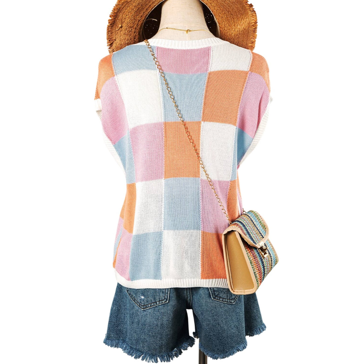 Color Block Cap Sleeve Sweater Vest Top P3014?