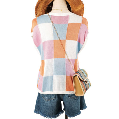 Color Block Cap Sleeve Sweater Vest Top P3014