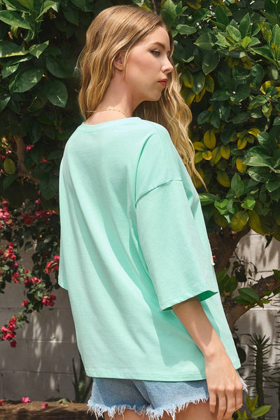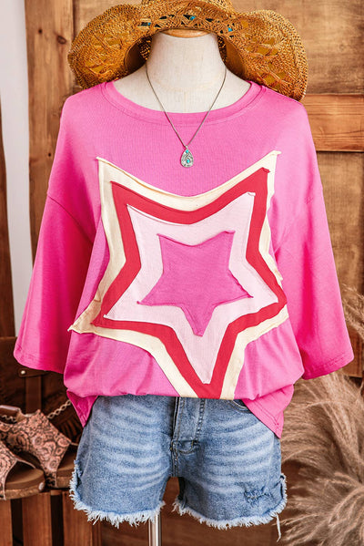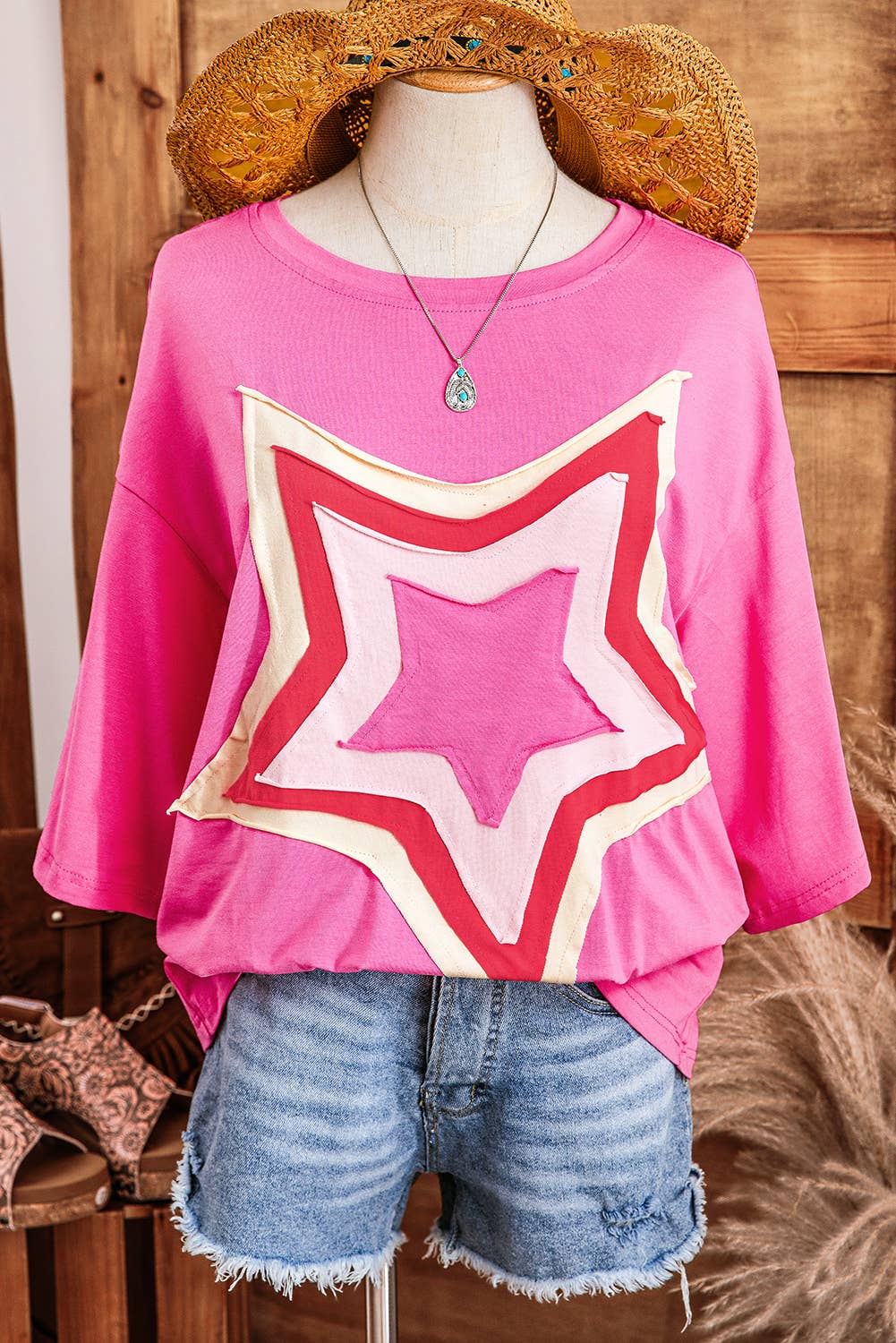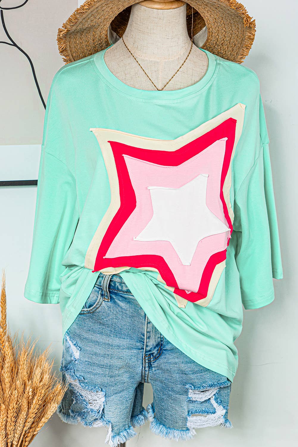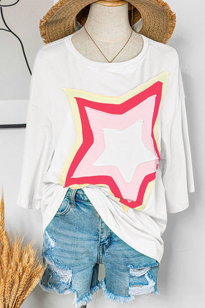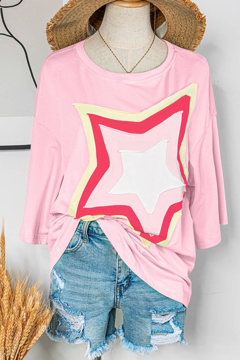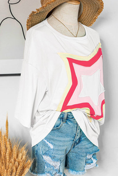 Colorblock Star Patched Half Sleeve Oversized Tee P1010 P3010